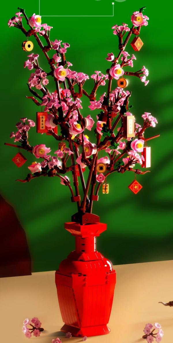 Peach blossom branches in vase