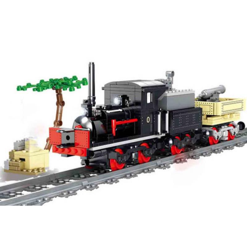 Dampflok mit Waggon und Schienen