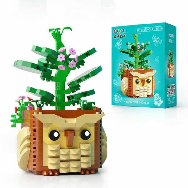 Pflanze mit Eulen-Pflanztopf (diamond blocks)