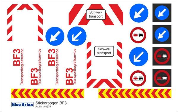 Stickerbogen für Schwertransport Begleitfahrzeug BF3