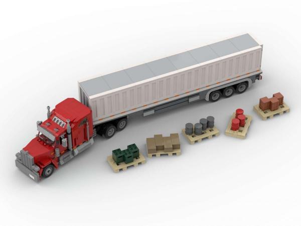 US-LKW rot-weiß mit Ladung